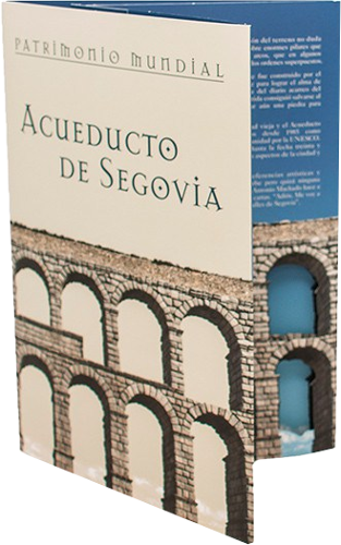 Ausführliche Beschreibung des Ausgabeanlasses:Der Aquädukt wurde wahrscheinlich von Kaiser Domitian (reg. 81–96 n. Chr.) in Auftrag gegeben und 98 n. Chr. unter dem römischen Kaiser Trajan (reg. 98–117 n. Chr.) fertiggestellt. In maurischer Zeit (1072) wurde er in Teilen beschädigt; die Schäden wurden jedoch im ausgehenden 15. Jahrhundert zur Zeit der Katholischen Könige durch das behutsame Einfügen von 36 gotischen Spitzbögen behoben. Der Aquädukt war noch bis 1974 in Betrieb. Die Pfeiler wurden in einer Art Gusstechnik errichtet, bei der eine in die Höhe wachsende Mauerschale aus Granit mit einer Mischung aus kleinen Geröllsteinen und Mörtel (opus caementitium) gefüllt wurde. Das vollkommen gleichmäßige Mauerwerk lässt darauf schließen, dass die Steine bereits im Steinbruch auf die vorgegebenen Maße zugehauen wurden und an Ort und Stelle ohne größere Nachbearbeitung versetzt werden konnten. Insgesamt verfügt der maximal 28 Meter hohe Aquädukt über 119 Bögen, die durch 163 Zwischenbögen (44 Doppelbögen im Zentrum und 75 Einzelbögen an den Seiten) stabilisiert werden. Die im unteren Bereich etwa 4,50 Meter auseinanderliegenden Pfeiler springen mehrfach leicht zurück und sind erst in einer lichten Höhe von teilweise bis zu 18 Metern durch Stabilisierungsbögen miteinander verbunden – durch diese gewagte Bauweise wurde eine enorme Material- und Transportkostenersparnis erreicht. Die obere Bogenreihe ist deutlich niedriger und schlanker und hat eine lichte Weite zwischen den ungegliederten Pfeilern von ca. 5,10 Meter. Oberhalb der drei höchsten Bögen in der Mitte befindet sich ein gemauerter Sockel, auf welchem ehemals wohl eine Inschrift zu Ehren des Erbauers angebracht war. Des Weiteren sind zwei Nischen zu sehen, in denen wahrscheinlich Statuen von Hercules, dem sagenhaften Gründer der Stadt aufgestellt waren. Heute befinden sich hier Figuren der Muttergottes (Virgen de la Fuencisla) und des Hl. Sebastian, die erstmals im 16. Jahrhundert erwähnt werden. Aufgrund seiner äußerst soliden Bauweise mit Pfeilerkernen aus antikem Beton (opus caementitium), Steinen aus Granit sowie der permanenten Instandhaltung über Jahrhunderte gilt der Aquädukt von Segovia als besterhaltenes Zeugnis römischer Architektur auf der iberischen Halbinsel. Seit 1985 ist er zusammen mit der Altstadt von Segovia auf der Liste des UNESCO-Welterbes aufgeführt. Die American Society of Civil Engineers hat ihn 1999 in die List of International Historic Civil Engineering Landmarks aufgenommen. ©Wikipedia