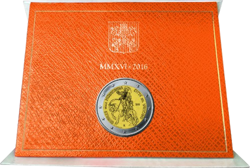 Motiv:Vom 8. Dezember 2015 bis 20. November 2016 findet das von Papst Franziskus ausgerufene Heilige Jahr der Barmherzigkeit statt. Das Motiv zeigt den heiligen St.Martin wie er seinen Mantel mit einem Bettler teilt.