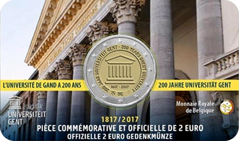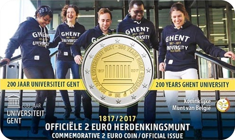 Ausführliche Beschreibung des Ausgabeanlasses:Die Universität wurde 1817 von König Willem I. gegründet, um eine neue intellektuelle Entwicklung im Süden des Vereinigten Königreichs der Niederlande, des späteren Belgien, wo keine Universität war wie im Norden, zu fördern. Diese Politik führte auch zur Gründung der Universität Lüttich und der Reichsuniversität Löwen. Die UGent wurde feierlich am 9. Oktober 1817 eröffnet, der erste Rektor war J. C. Van Rotterdam. Nach der belgischen Revolution wurde die Genter Universität zu einem französischsprachigen Institut (bis dahin war die Verkehrssprache Latein), damals die Sprache der intellektuellen Elite. Trotzdem unternahm die Flämische Bewegung Versuche, sie zu „verniederländischen“. Einen dieser Versuche gab es während des Ersten Weltkriegs 1917, aber nach dem Krieg wurde er rückgängig gemacht. Die Flämisierung der Universität Gent wurde im Ersten Weltkrieg unter anderem von der Flamenpolitik der deutschen Besatzer unterstützt. 1930 wurde die Universität endgültig niederländischsprachig. Der erste Rektor war August Vermeylen (bis 1932). Die Universität hat unter anderem Jacques Rogge (2001), Jan Hoet (2000), Kofi Annan (2004), Linda Hutcheon (2005) und Desmond Tutu (2005) die Ehrendoktorwürde verliehen. An der Universität studieren über 30.000 Studenten, davon circa 1.100 aus anderen EU-Ländern und ungefähr 1.000 aus Nicht-EU-Ländern. An der Universität (ohne Universitätsklinik) sind an 11 Fakultäten etwa 6.800 Mitarbeiter beschäftigt, davon ca. 920 Professoren und über 1.700 Assistenten und sonstige Forscher, dazu gut 1.900 drittmittelfinanzierte Wissenschaftler. Rektor ist Paul Van Cauwenberge. Die Universität verfügt über einen Etat von über 400 Millionen Euro. Eines der bekanntesten Gebäude der Universität ist der sogenannte „Bücherturm“ des Architekten Henry van de Velde, der die Universitätsbibliothek beherbergt. Der Turm ist eines der Wahrzeichen der Stadt. ©Wikipedia