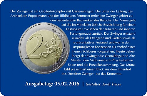 Motiv:Anlässlich der Bundesratspräsidentschaft Sachsens 2016. Abgebildet ist der Dresdner Zwinger. Entstanden ab 1709 als Orangerie und Garten sowie als repräsentatives Festareal.